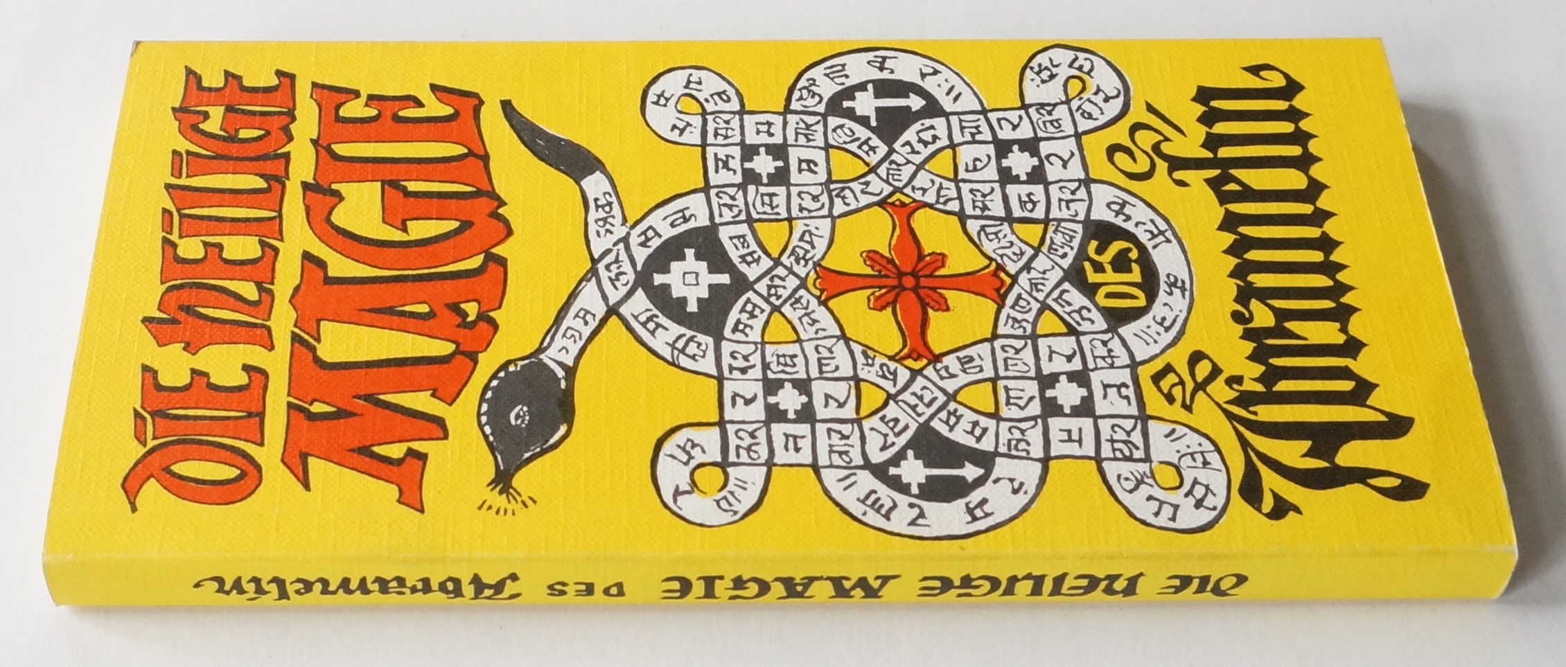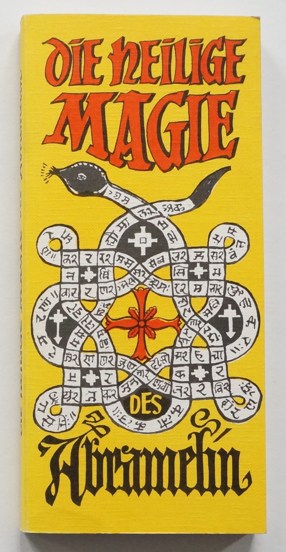Die heilige Magie des Abramelin. Die Überlieferung des Abraham von Worms. Nach dem hebräischen Text aus dem Jahre 1458. In die deutsche Sprache übertragen und herausgegeben von Johann Richard Beecken. Berlin, Verlag Richard Schikowski 1957 [Copyright]. [Späterer Druck ohne Jahresangabe]. Schmal-8°. 88 S., XLIV S. (Magische Quadrate), [12] S. Verlagsanzeigen. Illustrierte OKartonage (Gelb / Rot / Schwarz / Weiß).