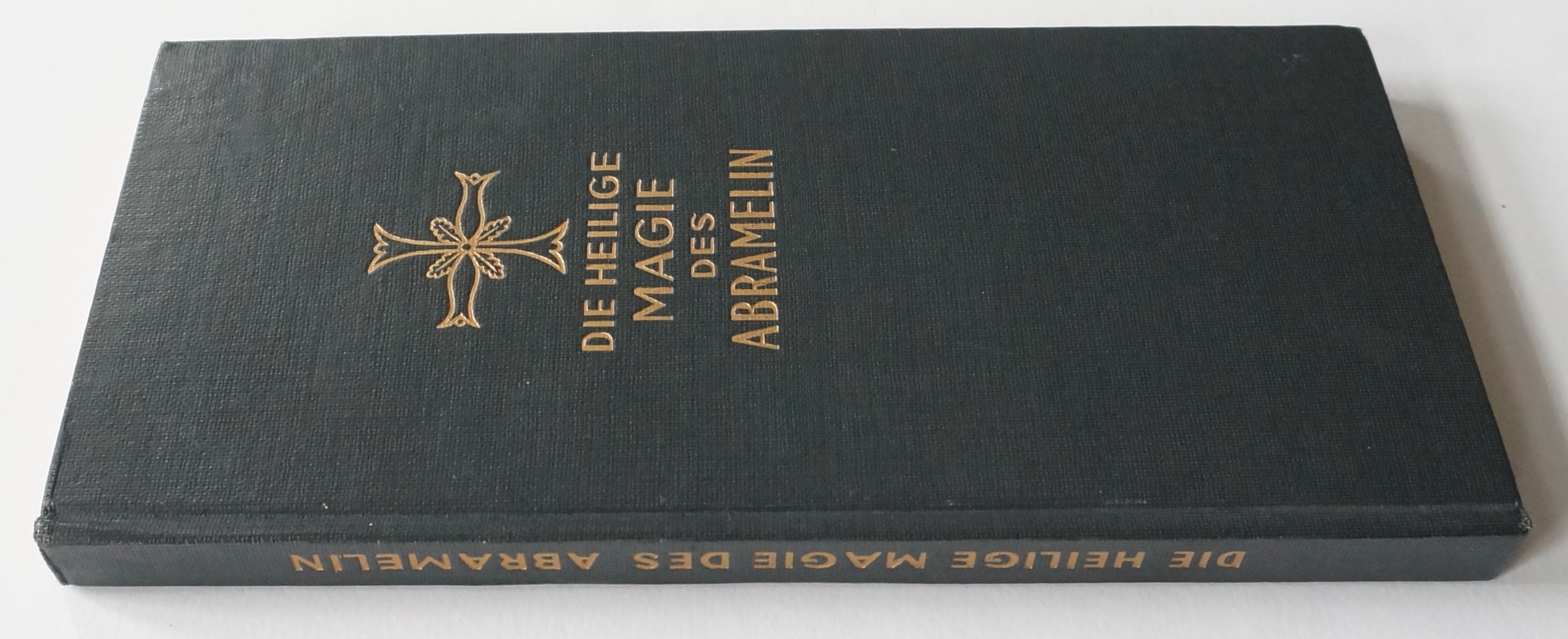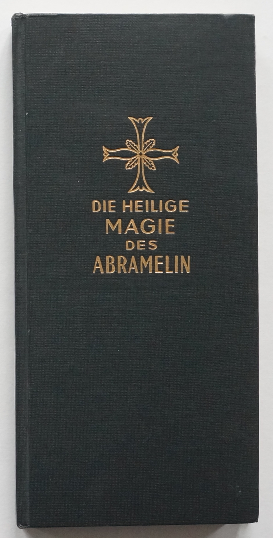 Die heilige Magie des Abramelin. Die Überlieferung des Abraham von Worms. Nach dem hebräischen Text aus dem Jahre 1458. In die deutsche Sprache übertragen und herausgegeben von Johann Richard Beecken. Berlin, Verlag Richard Schikowski 1957. Schmal-8°. 88 S., XLIV S. (Magische Quadrate), [8] S. Verlagsanzeigen. Schwarzer OLeinwand-Band mit goldgeprägtem Rückentitel und Deckelgoldprägung.
