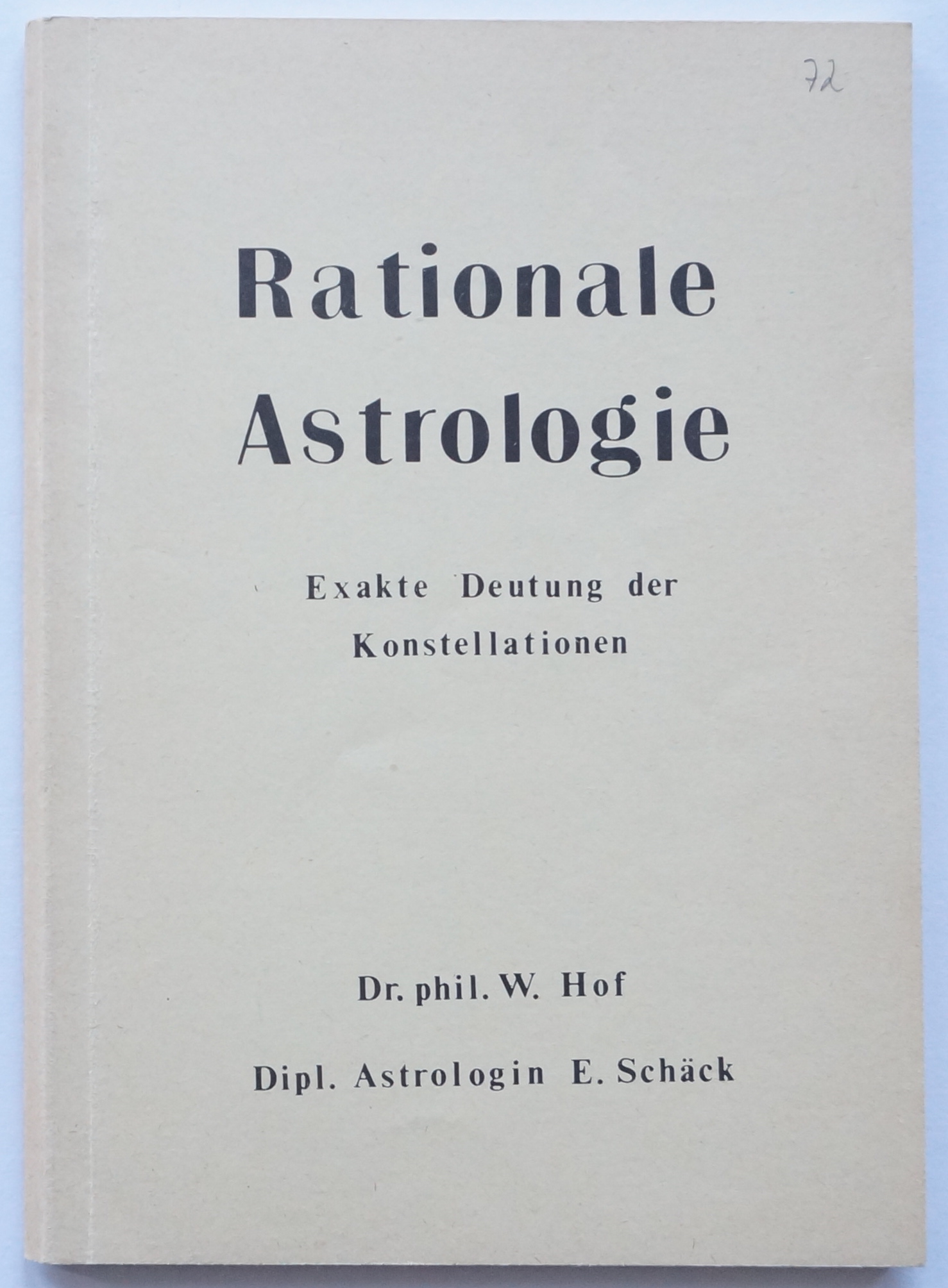 Rationale Astrologie. Exakte Deutung der Konstellationen [Umschlagtitel]. Schnega-Warpke, Baumgartner-Verlag [1981] 2. [erweiterte] Auflage. Mit Textfiguren. 91, [1] w. S. OKartonage.